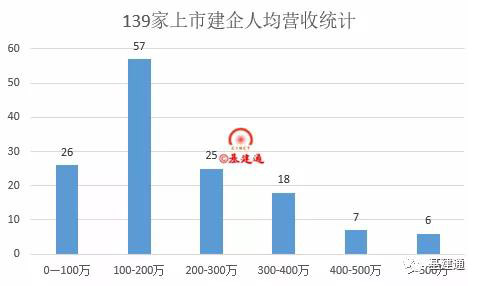 上表是六大建筑央企的人均营收榜,中国交建以人均超400万成为榜首,充分展现了企业的管理效率。但是这个只是几家建筑央企的对比,那么这几家央企在整个建筑业里面是什么个情况呢?我们统计了139家上市建企的相关数据。300万是一条分界线
