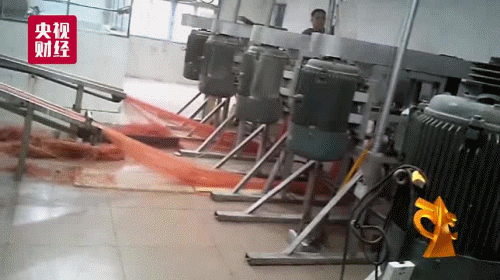 倒入滚筒里进行充分的搅拌后,一起混合做成了辣条。。。。