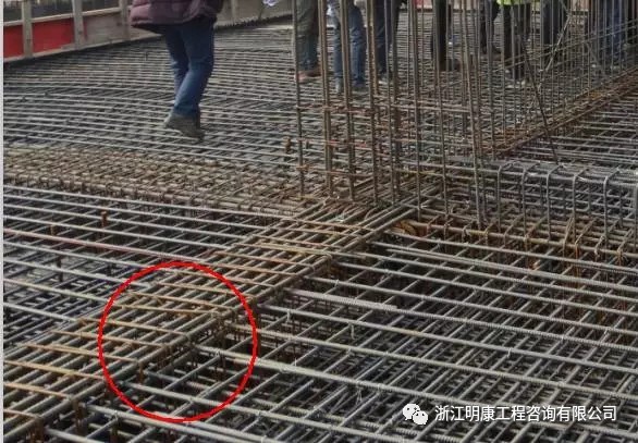 8、顶板吊钩:直径为16mm的钢筋勾到顶板上层钢筋。
