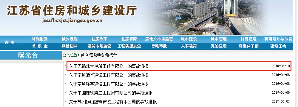 前日,江苏省住建厅又公布了一起无锡工地高处坠落事故:2019年4月6日,由无锡北大建筑工程有限公司施工总承包的工地,1名木工在铺设2层楼板模板时,不慎摔落至地面,抢救无效死亡。