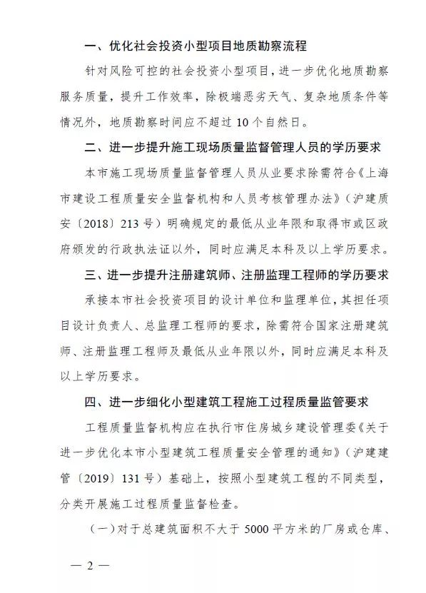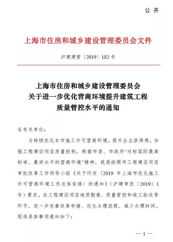 2019年3月27日上海市住建委发布《关于进一步优化营商环境提升建筑工程质量管控水平的通知》,通知明确提出: