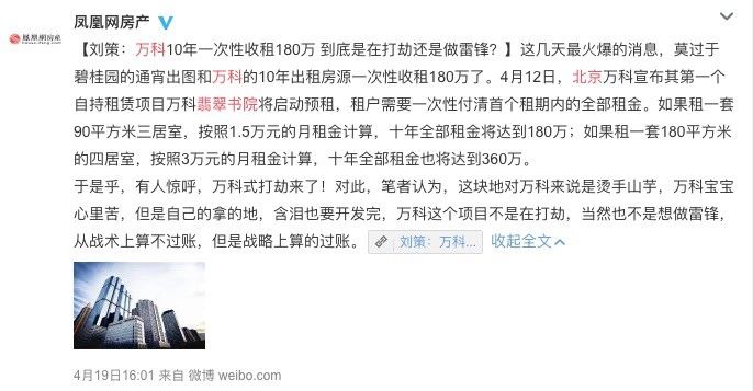 万科在北京建了一栋租赁房,只租不卖,呼应“租购同权”,结果租金一出来,吓了所有人一跳:
