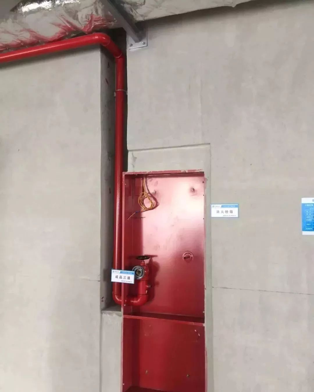 消火栓箱安装,箱体外填塞密实,管道安装垂直,栓头距地1.1米。