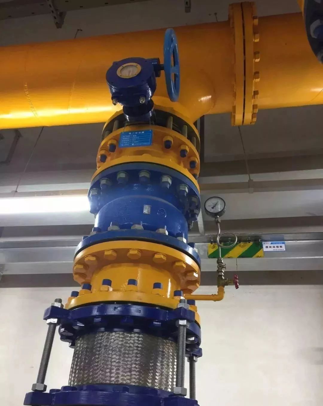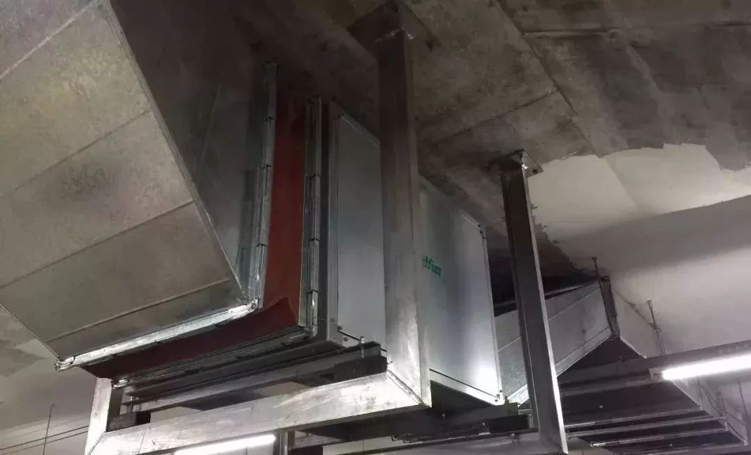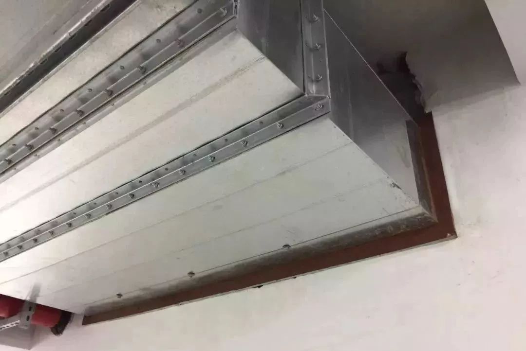 排烟管道安装,法兰采用倒角法兰,美观实用,标识清楚。