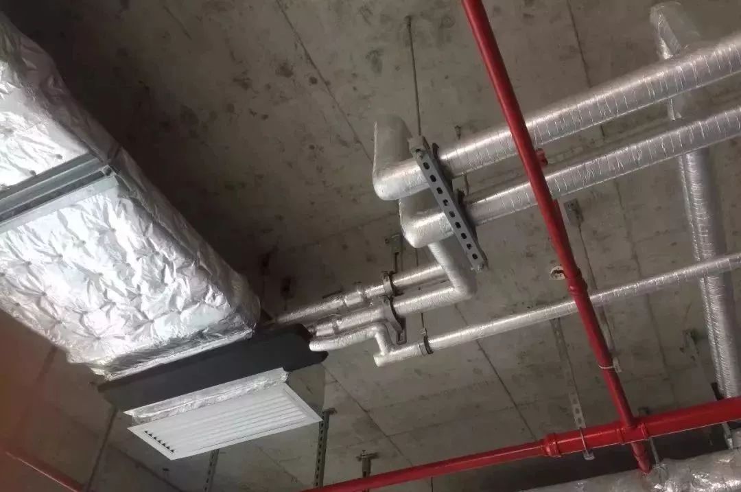 空调水管道,坡度正确,支架布置合理,保温整齐美观。