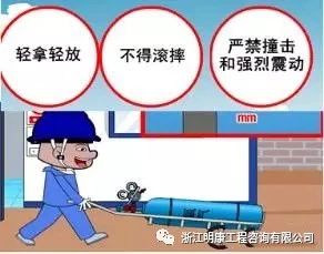 3.氧气瓶不能强烈碰撞。禁止采用抛、摔及其它容易引撞击的方法进行装卸或搬运,严禁用起重机吊运。