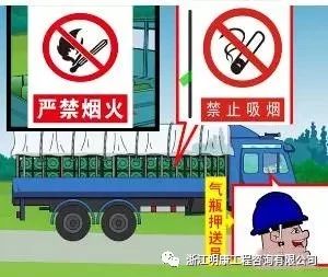 (5)车上禁止烟火。运输可燃、有毒气体气瓶时,车上应备有灭火器材或防毒用具。