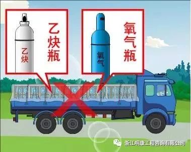 (6)易燃品、油脂和带有油污的物品,不应与氧气瓶或强氧化剂气瓶同车运输。