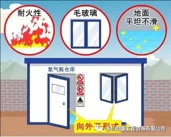(2)气瓶存储室不得设在地下室或半地下室,也不能和办公室或休息室设在一起。