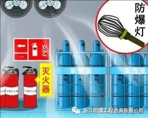 (5)存储可燃、爆炸性气体气瓶的库房内照明设备必须防爆,电器开关和熔断器都应设置在库房外,同时应设避雷装置。