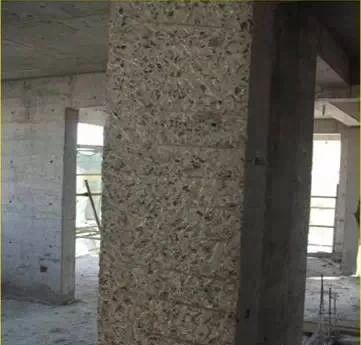 ②对较大蜂窝,凿去薄弱松散颗粒,洗净后支模,用高一强度等级的细石混凝土仔细填塞捣实;