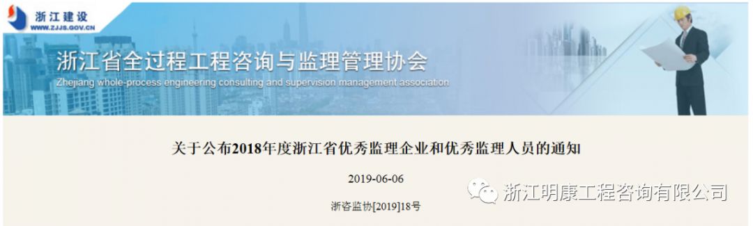 公司荣誉 | 明康咨询荣获2018年度浙江省优秀监理企业称号发布日期:2019-06-19