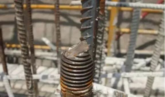 5)钢筋原材不切割平头,直螺纹连接有效丝扣数不足。