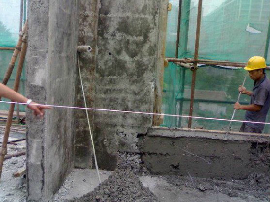6)施工缝不凿毛,如,柱墙施工缝处未将松散的混凝土、浮浆清除。