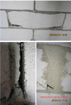 2)砌块不提前湿水,砌体施工时干砖上墙。