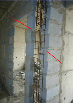 5)构造柱、施工洞两侧不按规范要求放置拉结筋。