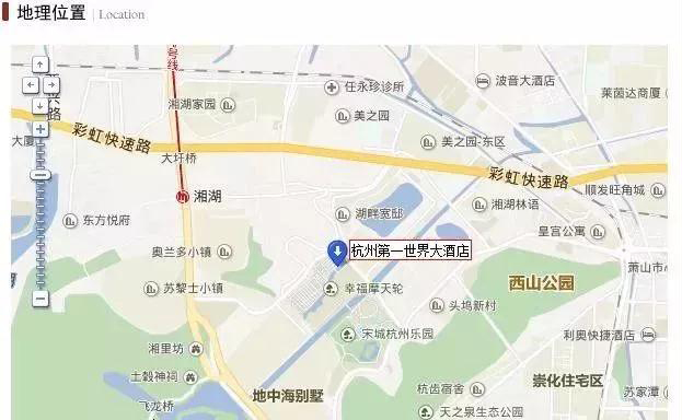 交通路线:地铁1号线(湘湖方向)→湘湖站(C口)出站→步行至湘湖公交站(乘坐712路)→杭州乐园北广场站下车→步行150米至第一世界大酒店