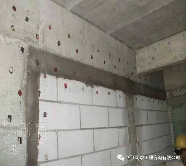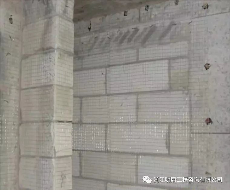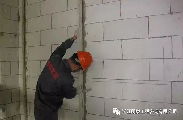 抹灰前对检查发现的砌块砌体表面缺棱掉角、开槽位置等需分层修补。做法是:先淋湿基体表面,刷掺水重10%的建筑胶水泥砂浆一道,紧跟抹1:2水泥砂浆,每遍厚度应控制在7~9mm。