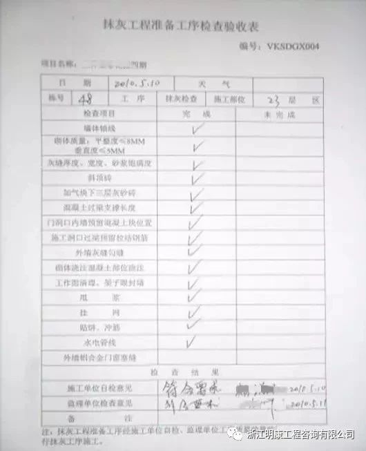 抹灰前应办理准备工序检查验收手续,并存档验收资料。