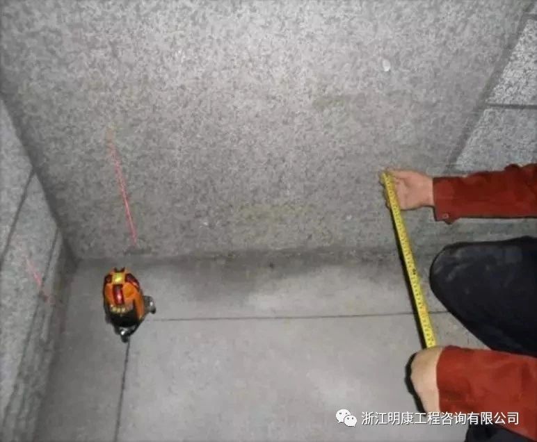 现场采用激光扫平仪测量绘制墙面、天花、门窗洞口收边等控制线,贴饼也必须采用激光贴饼工艺。
