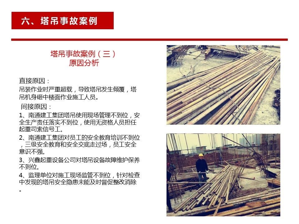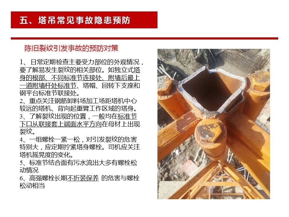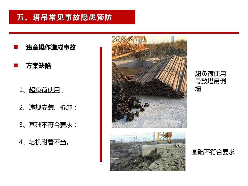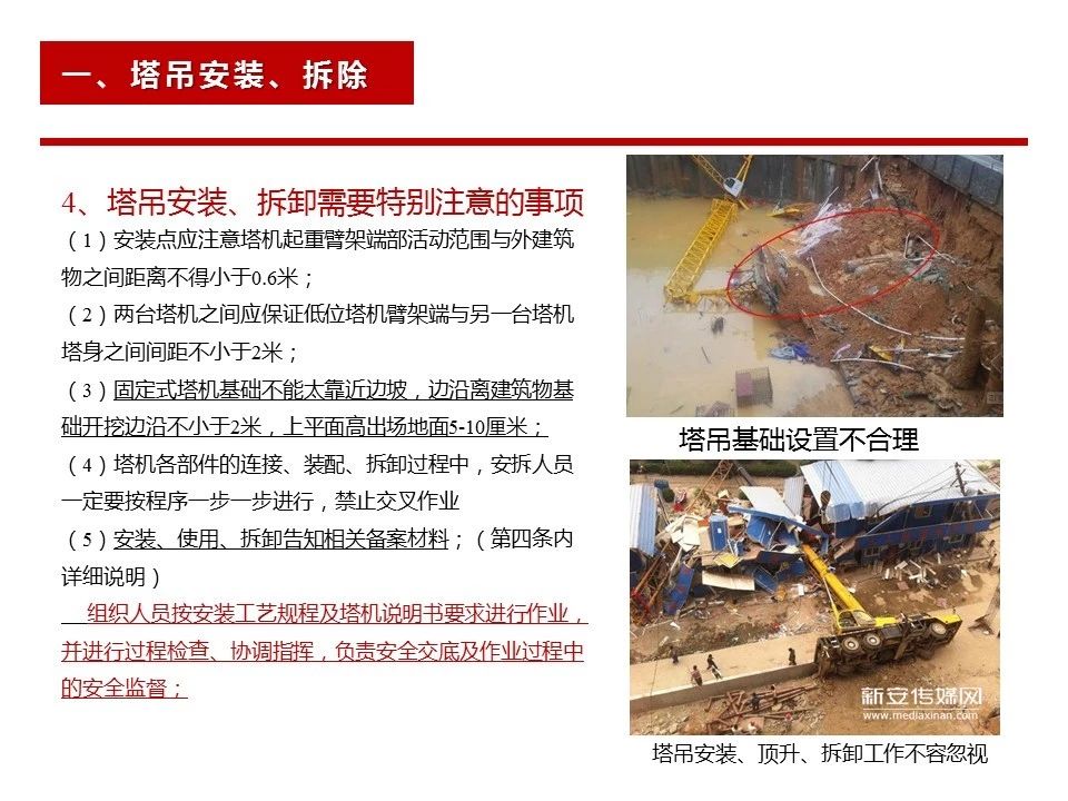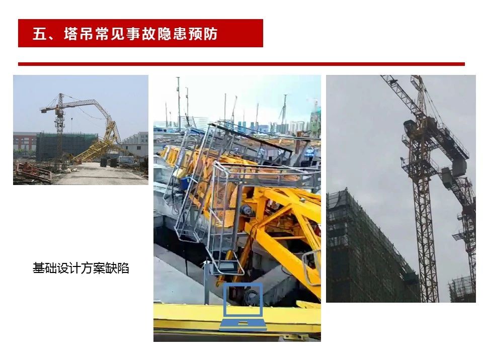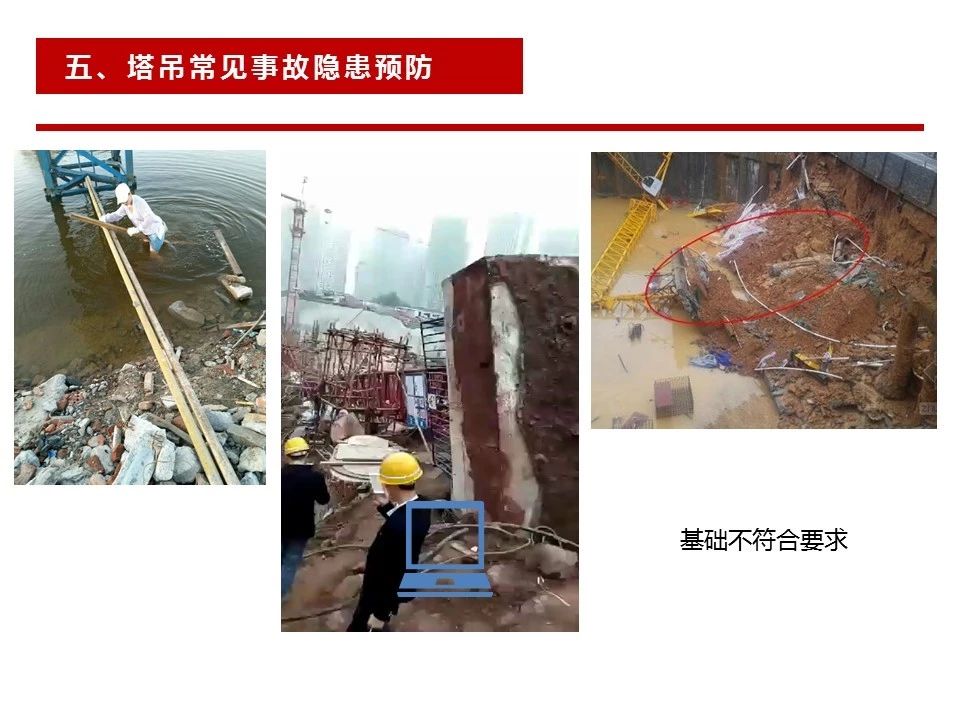 5. 检查塔吊基础,必须符合规范要求,避免连根吹倒的情况。