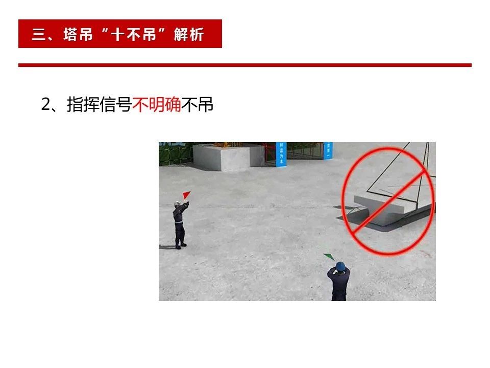 “十不吊”1. 指挥信号不明或违章指挥不吊。