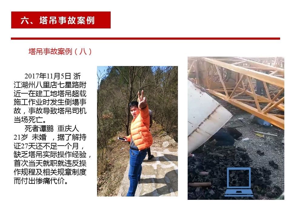 NO.1 塔吊倒塌 工人被压当场身亡8月27日下午2点左右,浙江嘉兴海宁盐官的宏建建设工地塔吊突然倒塌,塔吊上面有2个工人掉下来受伤后被送医,下方另有1名工人被牢牢压住背部当场死亡。