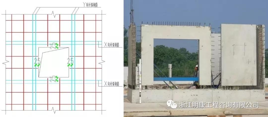 1)门窗洞口等位置,设计图纸中未按规范要求设置加强筋