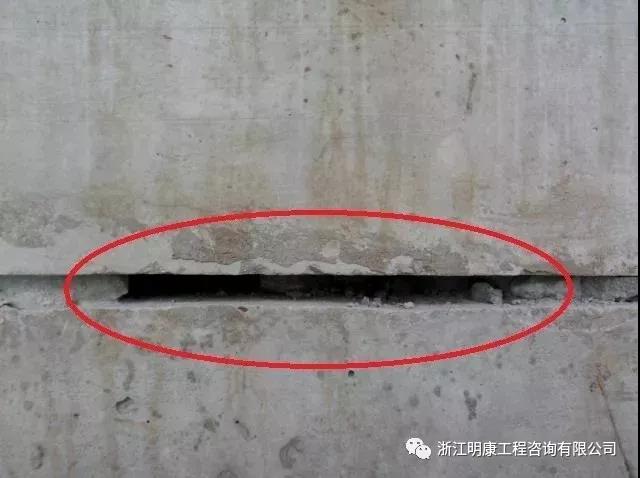 1)此部位下层预制构件未留住企口,导致水平缝隙过大