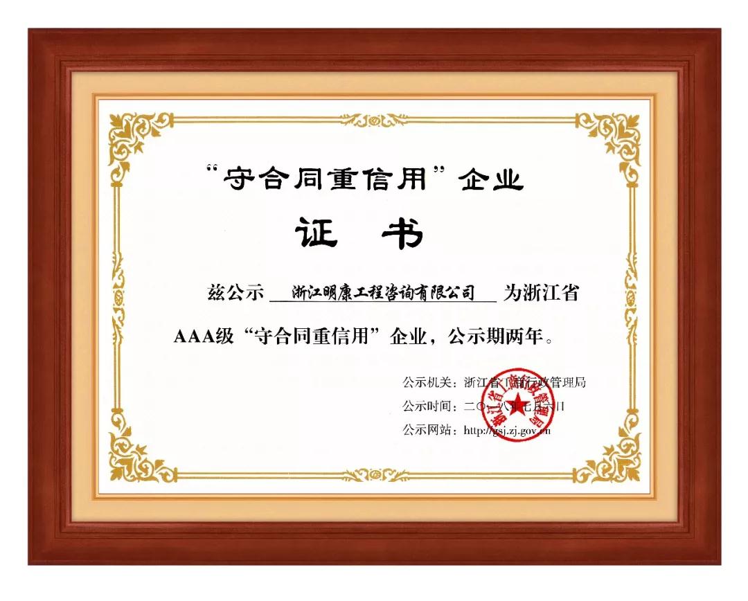 安博官方网站连续第4次获得浙江省AAA级“守合同重信用”企业的殊荣!