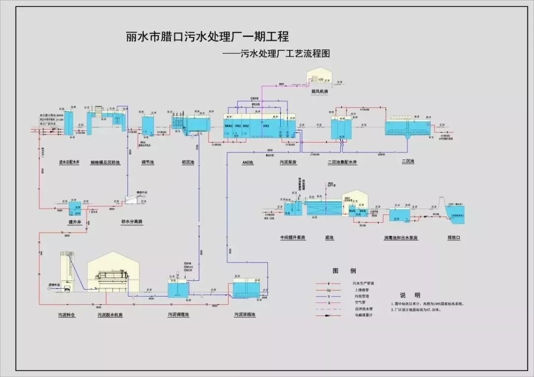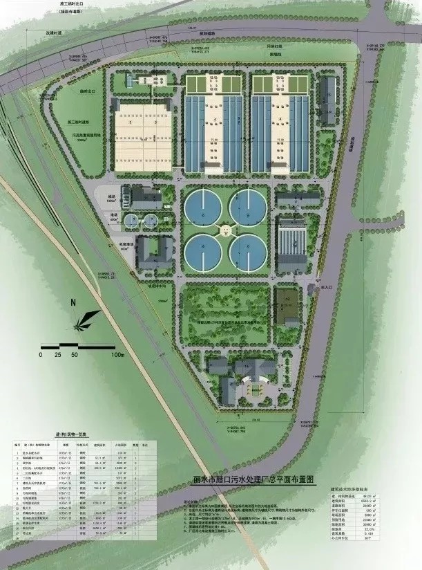 丽水腊口污水处理厂一期工程位于丽水市腊口镇武垟村,规划以及公路以南、金温铁路以东、大溪以西,项目用地面积为13.6公顷,设计规模12万吨/日。