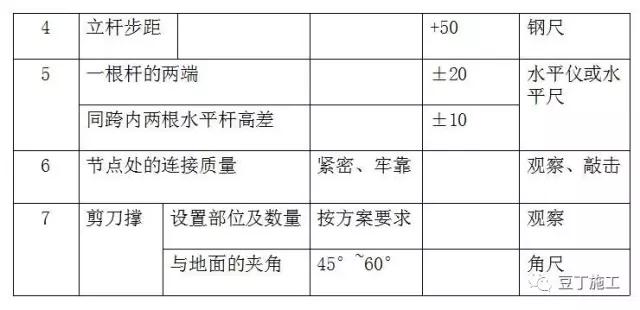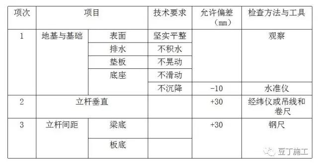 6、支撑架搭设技术要求允许偏差与检验方法见下表