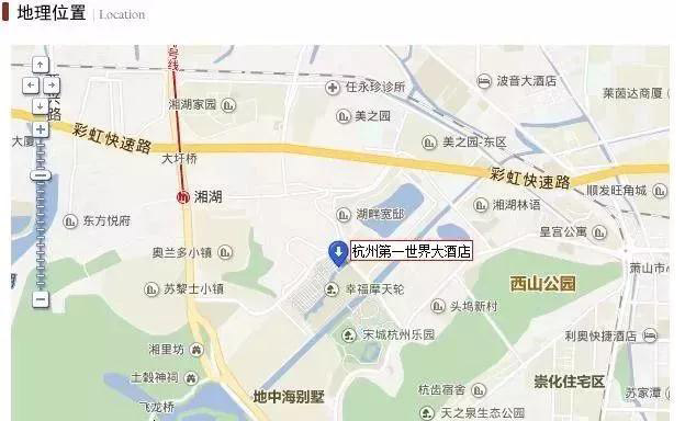 地址:杭州萧山区风情大道2555号交通路线:地铁1号线(湘湖方向)→湘湖站(C口)出站→步行至湘湖公交站(乘坐712路)→杭州乐园北广场站下车→步行150米至第一世界大酒店