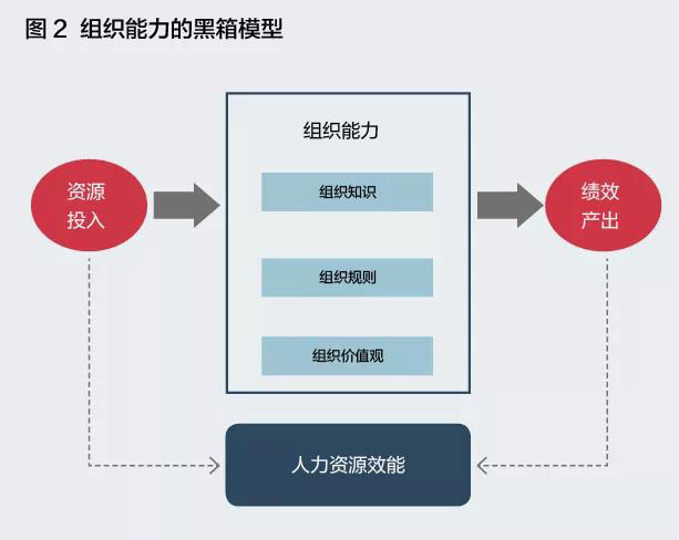 其一,如果我们不否认人力资源管理的最终目的是产生组织能力,那么人效就是组织能力的最佳代言。笔者曾经举过一个黑箱模型的例子(如图2)。